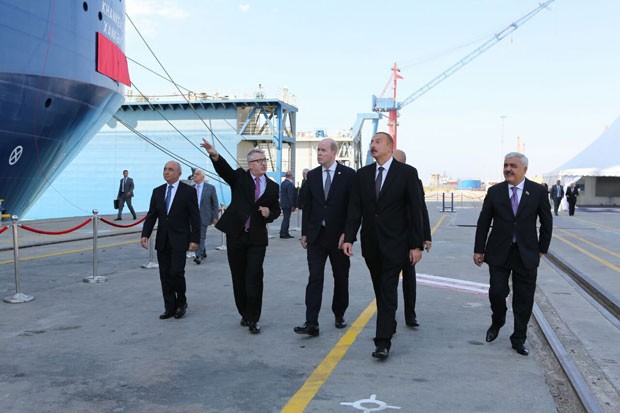 Sonra Prezident İlham Əliyev gəminin işə salınmasını bildirən düyməni basıb.