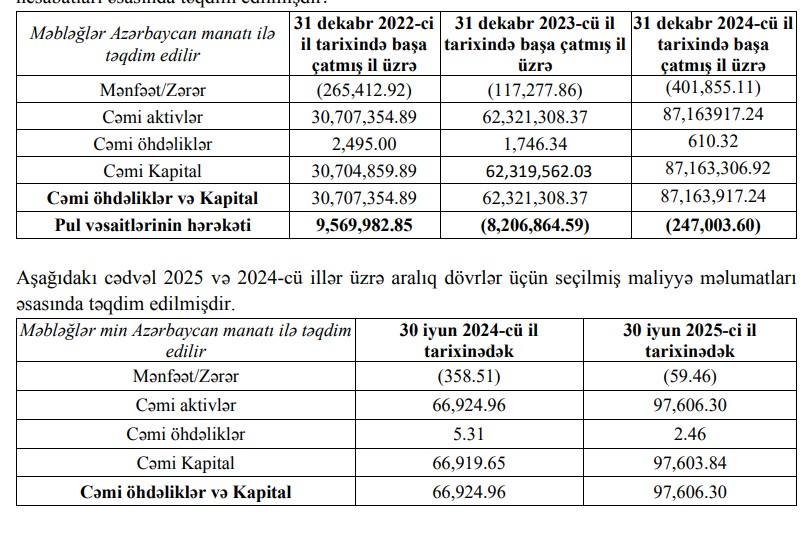 “Bir Kredit BOKT” MMC 2025-ci ilin ilk 6 ayını 59 min 460 manat xalis zərər ilə başa vurub. Halbuki təşkilat 2024-cü ilin ilk yarısını 358 min 510 manat, 2024-cü ili isə 401 min 855 manat xalis zərər ilə bağlamışdı. Beləlklə, bu il Təşkilatın xalis zərəri 6 dəfə azalıb.