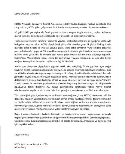 Türkiyədə 150-dən çox satış nöqtəsi olan "Hotiç" şirkəti borclarını ödəyə bilməyəcəyini açıqlayıb.