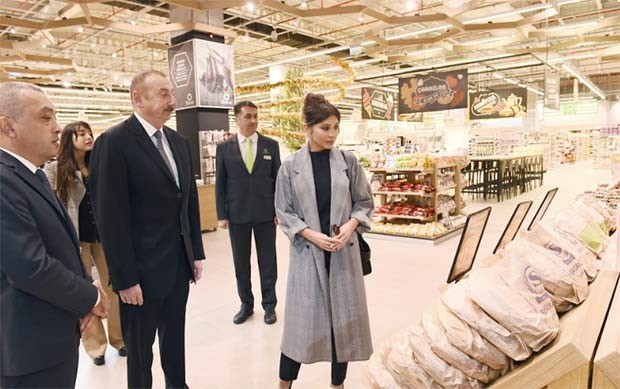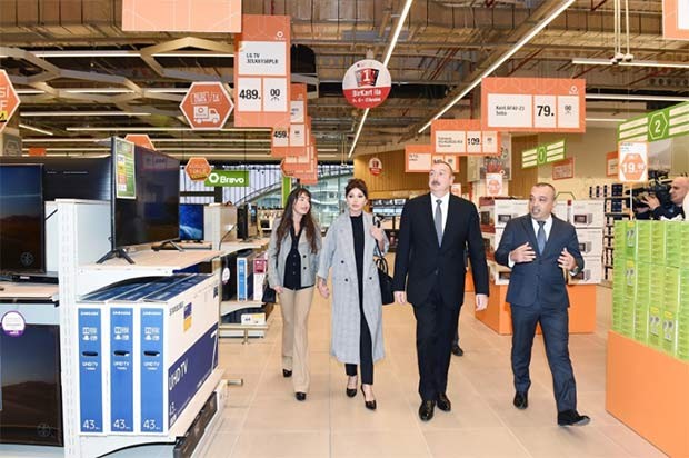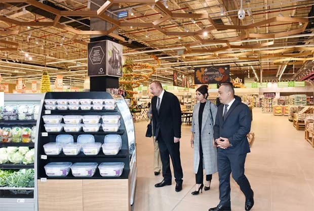 Hipermarketdə yaradılan şərait barədə dövlət başçısına və birinci xanıma məlumat verilib.