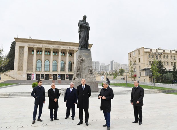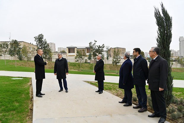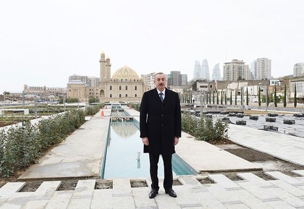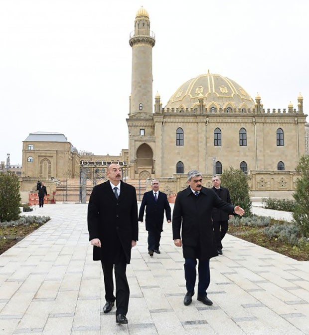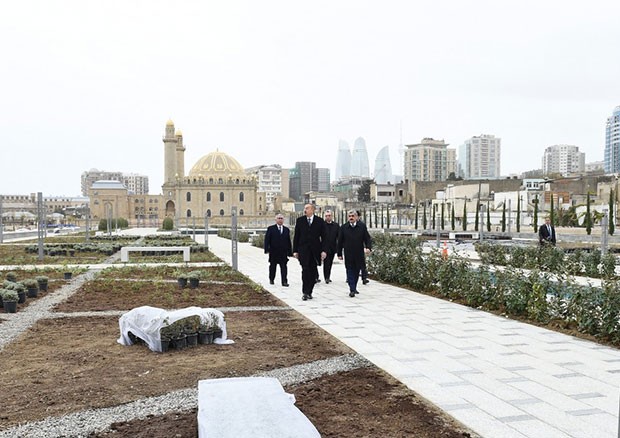 Prezident Təzəpir məscidinin ətrafında görülən işlərlə tanış olub - FOTOLAR