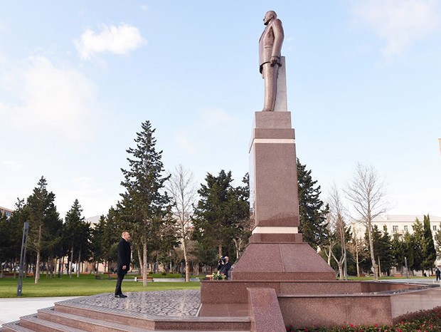 Dövlətimizin başçısı ulu öndər Heydər Əliyevin abidəsi önünə gül dəstəsi qoydu.
