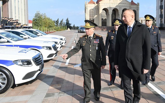 Daha sonra ölkə başçısı Daxili işlər naziri Ramil Usubovla birgə xidməti istifadə üçün alınan yeni avtomobillərə baxıb.