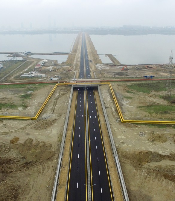 Ziya Bünyadov prospekti ilə Balaxanı-Binəqədi avtomobil yolunu birləşdirən, paytaxtın nəqliyyat sistemində mühüm əhəmiyyətə malik yeni yolun tikintisi 2017-ci ilin yanvarında və bu ilin mayında Prezident İlham Əliyevin imzaladığı sərəncamlara əsasən həyata keçirilib. Uzunluğu 2,7 kilometr olan yolun tikintisi yüksək keyfiyyətlə və sürətlə aparılaraq yekunlaşdırılıb. Yeni yol Böyükşor gölünün iki hissəyə bölünməsi məqsədilə çəkilən 1570 metr uzunluğundakı bəndin üzərindən keçir. Yeni yol dörd hərəkət zolaqlı olmaqla birinci texniki dərəcəyə uyğun inşa edilib. Yolboyu 16 yol nişanı quraşdırılıb. Yolun əvvəlində və sonunda uzunluqları 320 və 274 metr olan iki tunel də inşa edilib. Tunellərin hərəkət hissəsinin eni 28 metrdir. Tikinti işləri çərçivəsində yeni yolun giriş və çıxış hissələrində qovşaqlar da tikilib. Yol boyunca müasir işıqlandırma sistemi qurulub, dörd avtobus dayanacağı quraşdırılıb.