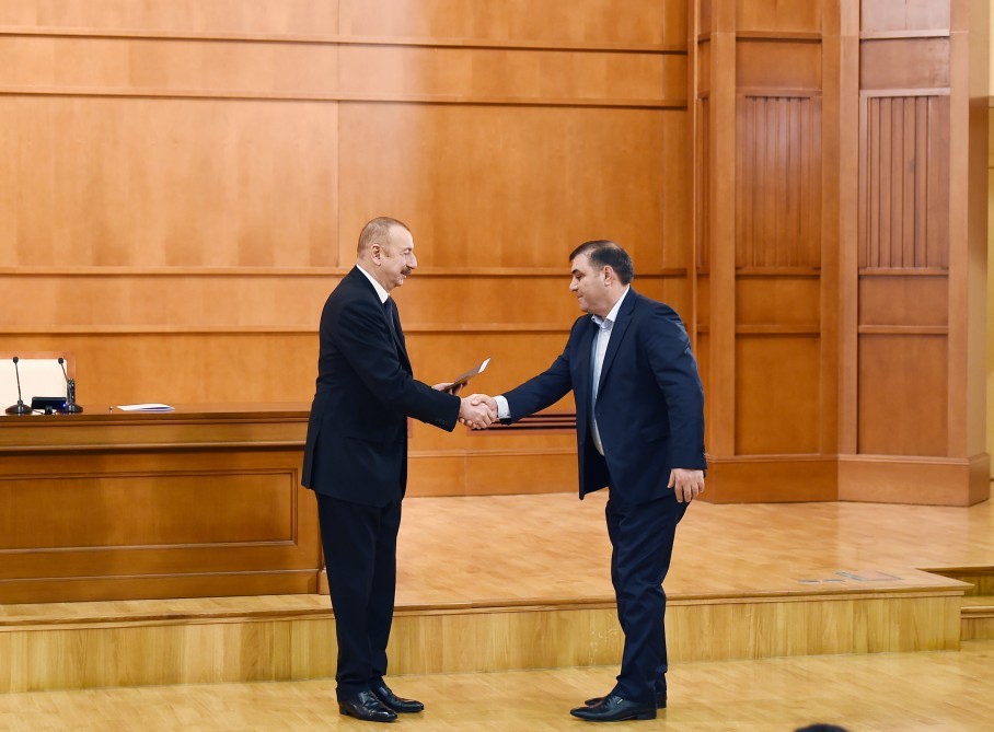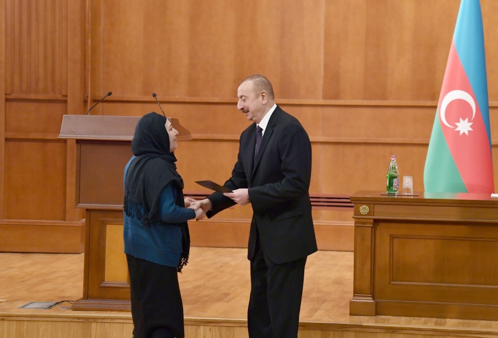 Sonra dövlətimizin başçısı birdəfəlik ödəməni almaq üçün istifadə olunan plastik kartları şəhid hərbi qulluqçularının vərəsələrinə təqdim etdi.