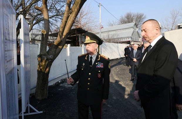 Sonra dövlətimizin başçısı Firdovsi küçəsinində Həcər Zamanovanın ailəsi üçün inşa edilən yeni evdə görülən işlərlə tanış oldu. Məlumat verildi ki, dağılmış evin yerində tikilən yeni ev 3 otaqdan ibarət olacaq. Burada normal yaşayış üçün hərtərəfli şərait yaradılacaq.