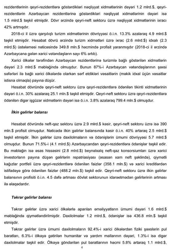 2018-ci ildə Azərbaycanın tədiyyə balansının ümumi profisiti 3 milyard 508 milyon ABŞ dolları təşkil edib. (2017-ci ildə Azərbaycanın tədiyyə balansının ümumi profisiti 1 milyard 971 milyon dollar təşkil etmişdi).