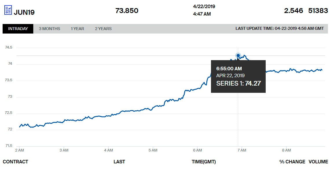 Neftin bahalaşmasının səbəbi ABŞ-ın bəzi ölkələrə İran neftini almağı qəti qadağan edəcəyi barədə xəbərdir. Həmçinin oxu: ABŞ bəzi ölkələrə İran neftini almağı qəti qadağan edəcək