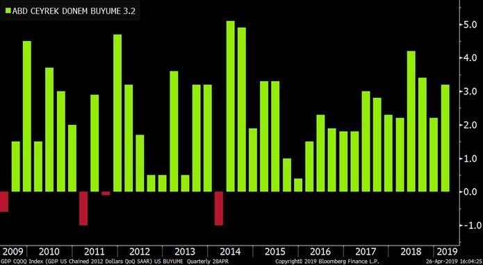 ABŞ Ticarət Nazirliyinin məlumatlarına görə, ABŞ iqtisadiyyatı 2019-cu ilin Yanvar-Mart dövründə illik müqayisədə 3.2% artıb.