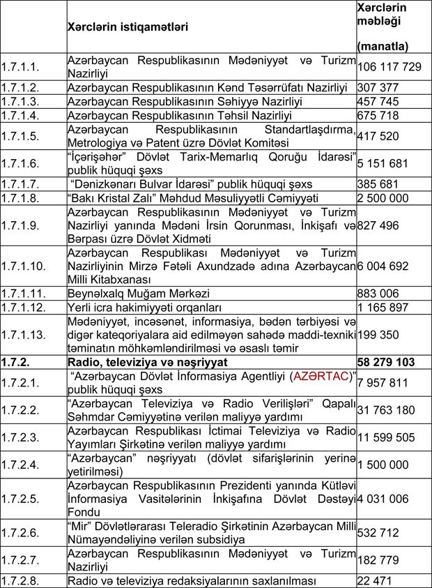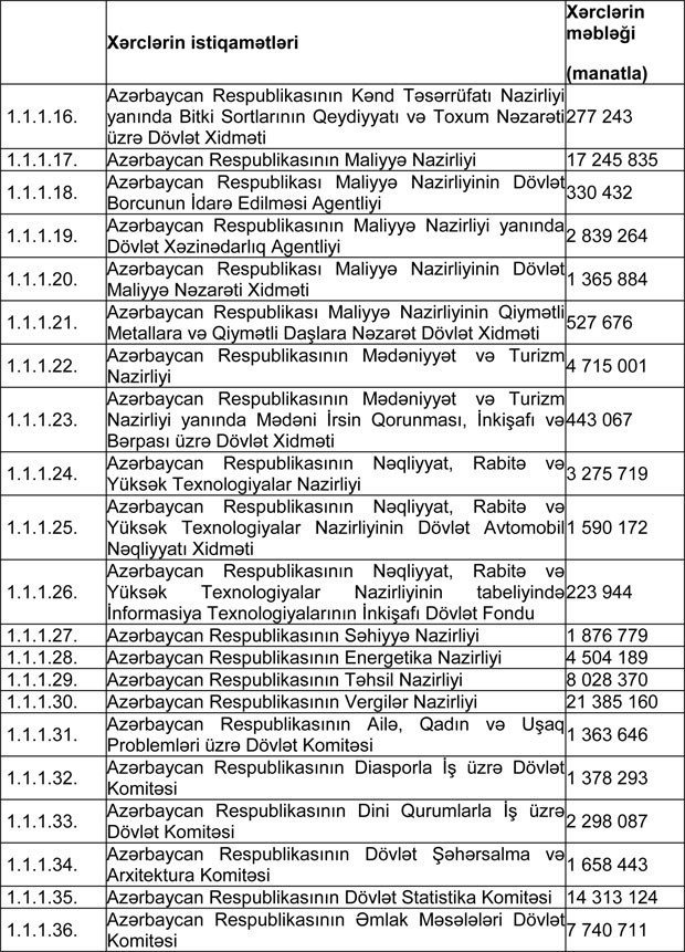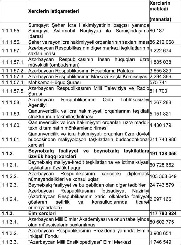 Azərbaycan Respublikasının 2018-ci il dövlət büdcəsinin gəlirlər və xərclər üzrə göstəriciləri aşağıdakı kimi qəbul edilib: