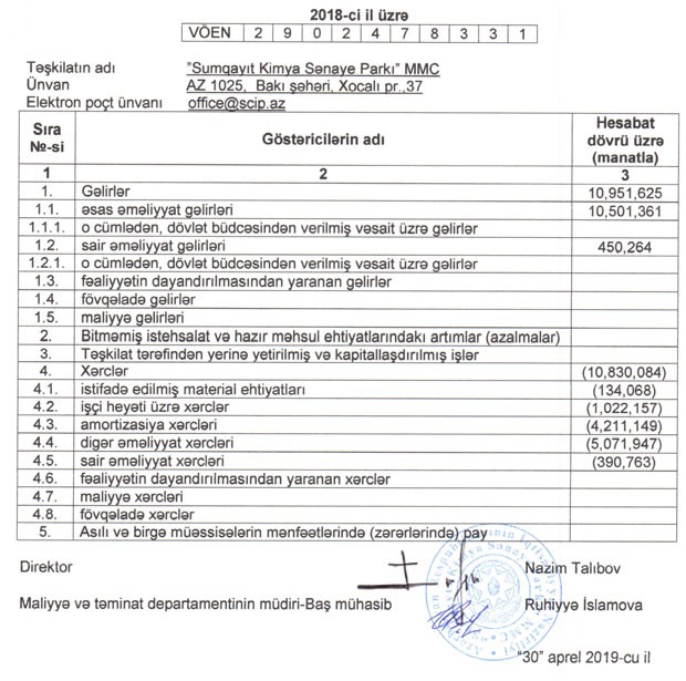 "Sumqayıt Kimya Sənaye Parkı" MMC 2018-ci ili 122 min manat mənfəət ilə başa vurub. Müqayisə üçün qeyd edək ki, MMC 2017-ci ili 17 milyon 880 min manat zərər ilə bağlamışdı.