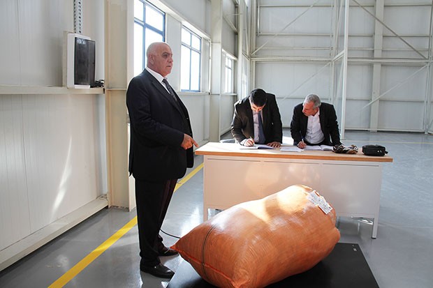 “Azərxalça” Açıq Səhmdar Cəmiyyəti İdarə Heyətinin sədri Vidadi Muradov fabrikə yun qəbulu prosesi ilə maraqlanıb.
