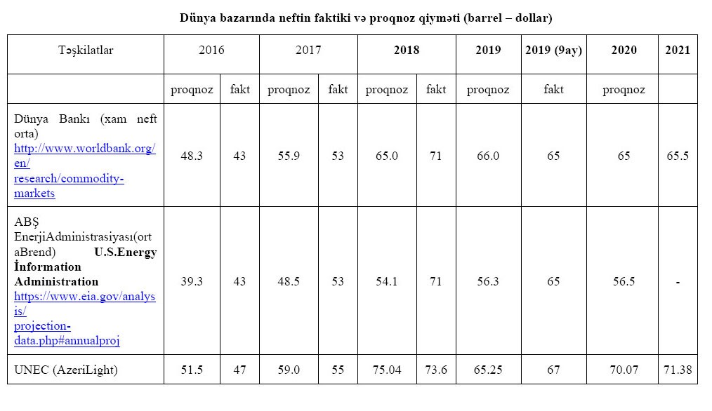 UNEC ötən ilin Oktyabr ayında 2019-da orta qiymətin 86.13 dollar, 2020-də isə 97.22 dollar olacağını gözləyirdi.