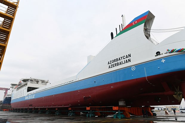 Prezident İlham Əliyev “Azərbaycan” gəmi-bərəsinin suya salınmasını bildirən düyəni basıb.