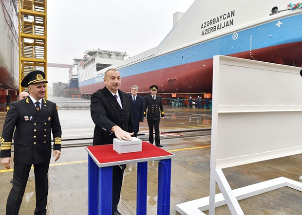 Azərbaycan Respublikasının Prezidenti İlham Əliyev dekabrın 13-də “Azərbaycan Xəzər Dəniz Gəmiçiliyi” Qapalı Səhmdar Cəmiyyətinin sifarişi ilə Bakı gəmiqayırma zavodunda inşa olunan ilk neft tankerinin istismara verilməsi və “Azərbaycan” adlı gəmi-bərənin suya salınması mərasimində iştirak edib.