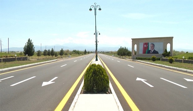 Prezident Goranboya səfər edib, yolun lentini kəsib