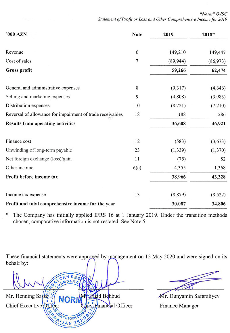 Qeyd edəkl ki, "Norm" MMC-nin maliyyə hesabatlarına “KPMG Audit Azerbaijan” şirkəti rəy verib.
