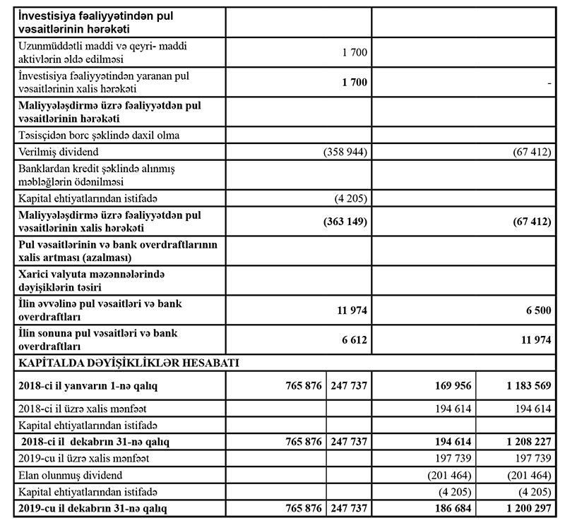 “Bakı Neft-Mədən Avadanlıqları” ASC-nin 2019-cu il dekabrın 31-nə maliyyə hesabatı