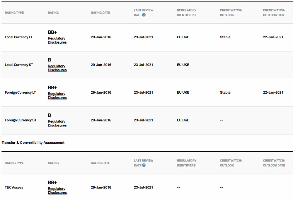 "S&P Global Ratings" ("S&P") reytinq agentliyi növbəti yarımillik baxışından sonra Azərbaycanın yerli və xarici valyutada uzunmüddətli və qısamüddətli suveren kredit reytinqlərini "BB+/B" səviyyəsində təsdiqləyib, uzumüddətli reytinqlər üzrə proqnozu isə "stabil" saxlayıb.