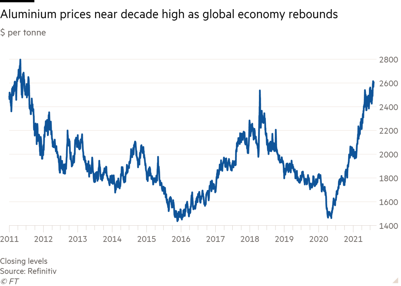 Qlobal iqtisadiyyatın bərpası fonunda metal qiymətlərindəki sürətli bahalaşma alüminiumdan da yan keçməyib. Pivə bankalarından qablaşdırma məhsullarına qədər hər şeydə artan qlobal tələbat, eləcə də Çində hasilatın (xüsusən Yunnan əyalətində) azalması əsas təkanverici qüvvədir.