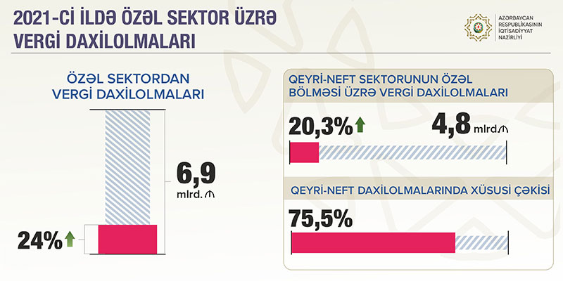 2021-ci ildə özəl sektordan vergi daxilolmaları 24% artaraq 6,9 milyard manata çatıb.