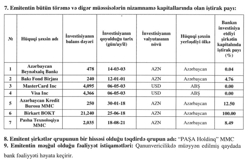 Xatırladaq ki, “PASHA Technology” 2018-ci ildə yaradılıb. Onun nizamnamə kapitalı 23 951 519 manatdır. “Kapital Bank” ötən ilin II yarısında onun həmtəsisçisi olub.