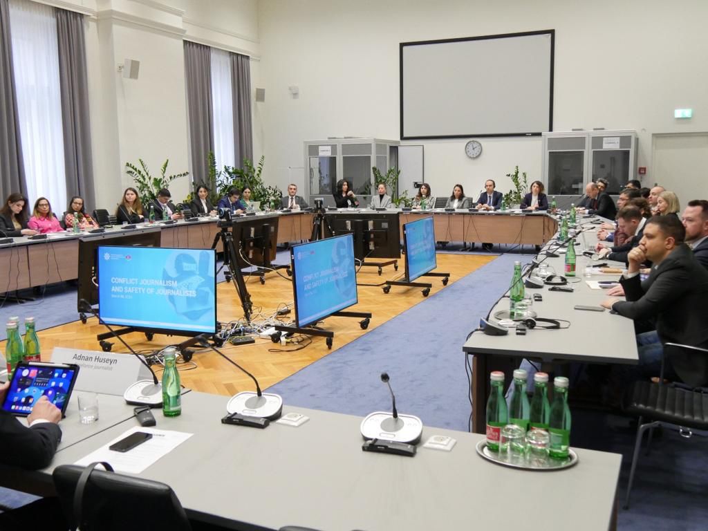 Tədbir çərçivəsində münaqişə zonalarında fəaliyyət göstərən jurnalistlərin üzləşdiyi problemlər və risklər barədə məlumat verilib, onların təhlükəsizliyinin və müdafiəsinin gücləndirilməsi üçün potensial həll yollarının müəyyən edilməsinə dair fikir mübadiləsi aparılıb.