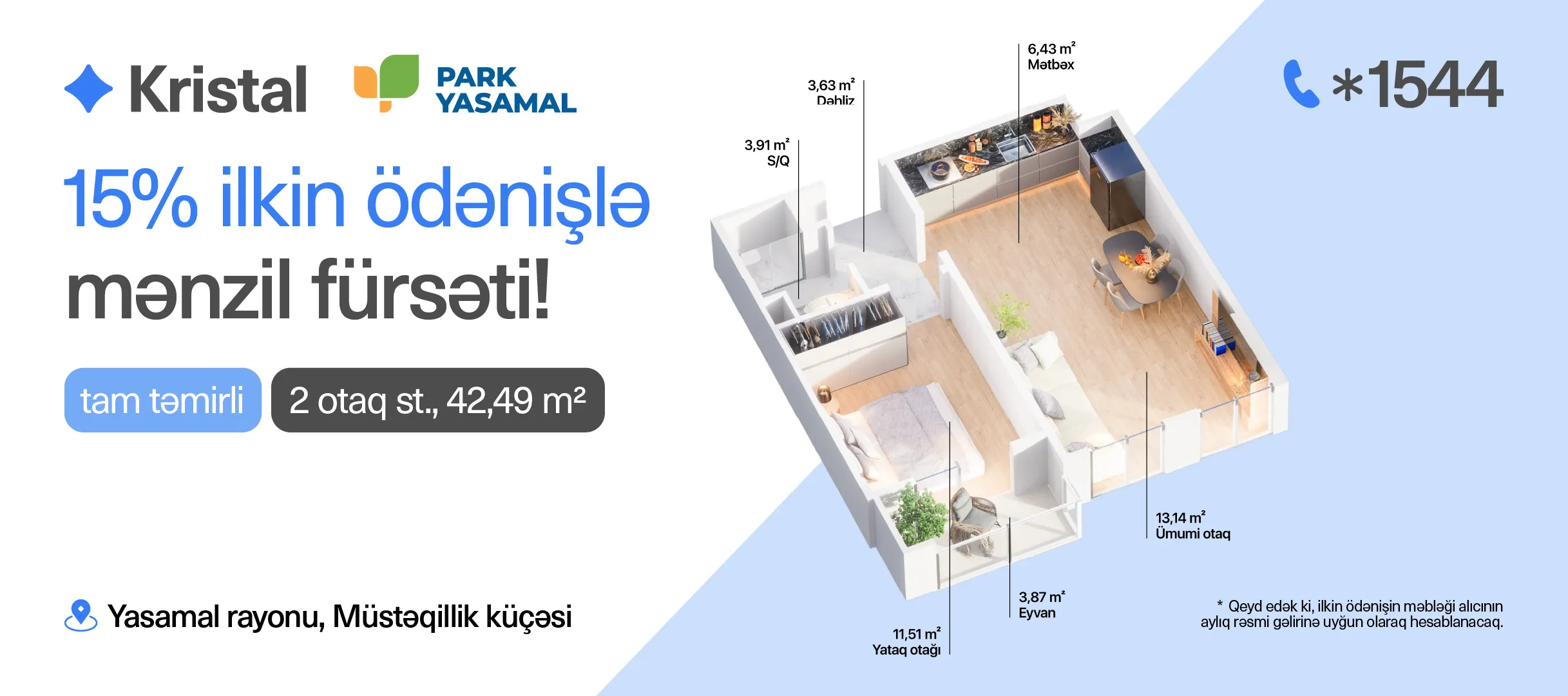 (®) "Kristal" Bakı və Sumqayıt şəhərlərində mənzil sahibi olmaq istəyənləri sevindirəcək xəbər verib.