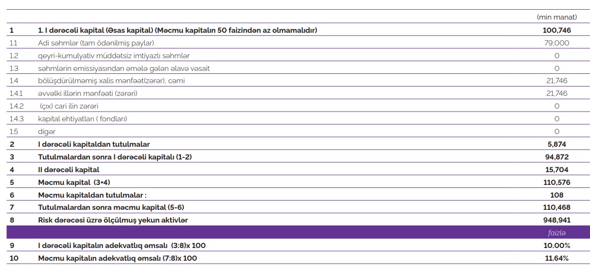 Məcmu kapital 30 sentyabr 2025-ci il tarixinə 110 milyon 468 min manat olub. Bu, 2024-cü ilin sonu ilə müqayisədə 11 milyon 592 min manat və ya 11,7% çoxdur.
