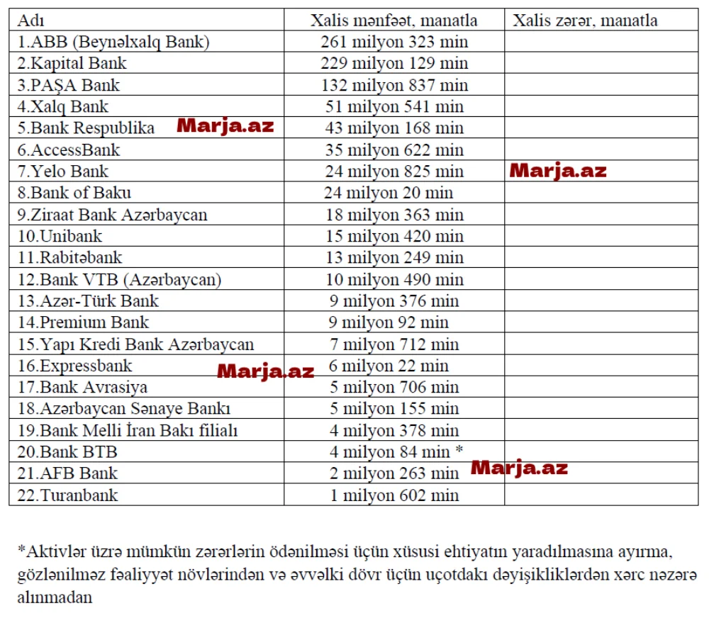 Bankların mənfəət məbləğləri - YENİ SİYAHI