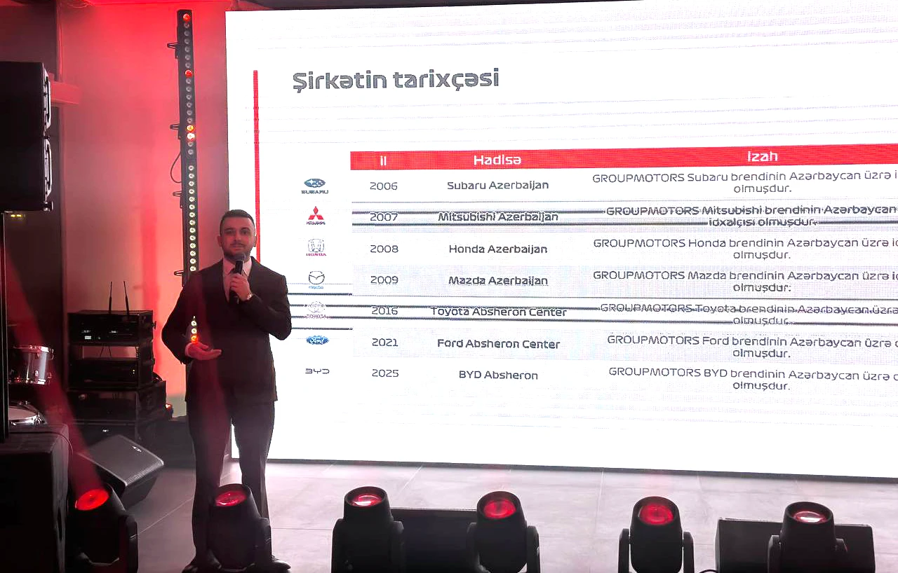 Azərbaycanda Subaru, Mitsubishi, Honda, Mazda, Toyota, Ford və BYD markalarının rəsmi təmsilçisi olan “Group Motors” şirkəti Bakıda Babək prospektində yeni satış və servis mərkəzini istifadəyə verib.
