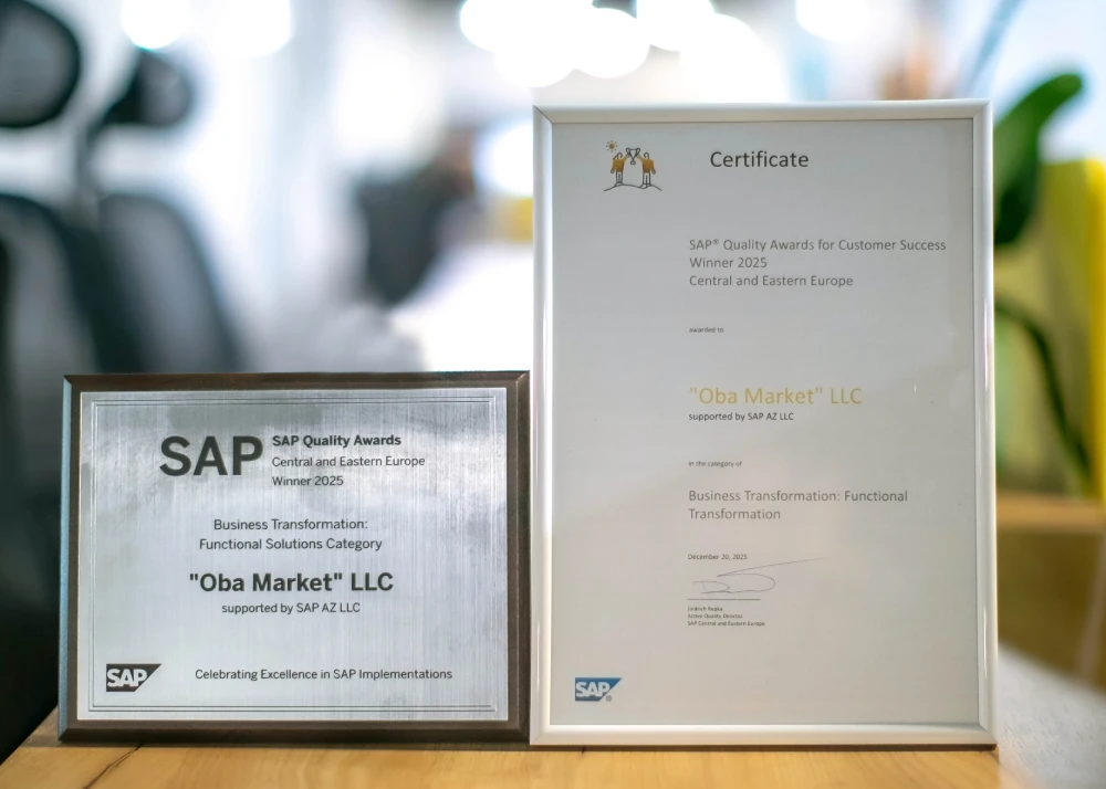 OBA marketlər şəbəkəsi OBA SAP SuccessFactors layihəsi SAP SuccessFactors Azərbaycan OBA beynəlxalq mükafat Biznes Transformasiyası nominasiyası HR rəqəmsallaşdırılması insan resursları texnologiyaları HR proseslərinin optimallaşdırılması işə qəbul sistemləri performans idarəetməsi təlim və inkişaf platforması əməkdaş təcrübəsinin yaxşılaşdırılması təşkilati çeviklik əməliyyat səmərəliliyi əməkdaş məmnuniyyəti HR transformasiyası pərakəndə ticarətdə rəqəmsallaşma OBA market xəbərləri SAP HR həlləri Azərbaycan şirkətlərinin beynəlxalq uğurları