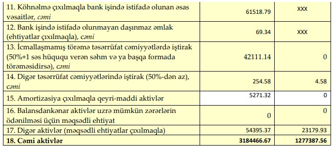 Ötən il "Xalq Bank" digər banklardakı depozitlərini 80 milyon manat və ya 52,1%  artıraraq 233 milyon 448 min manata, qiymətli kağızlara investisiylarını isə 162 milyon 266 min manat və ya 4 dəfəyə yaxın artıraraq 218 milyon 102 min manata çatdırıb.