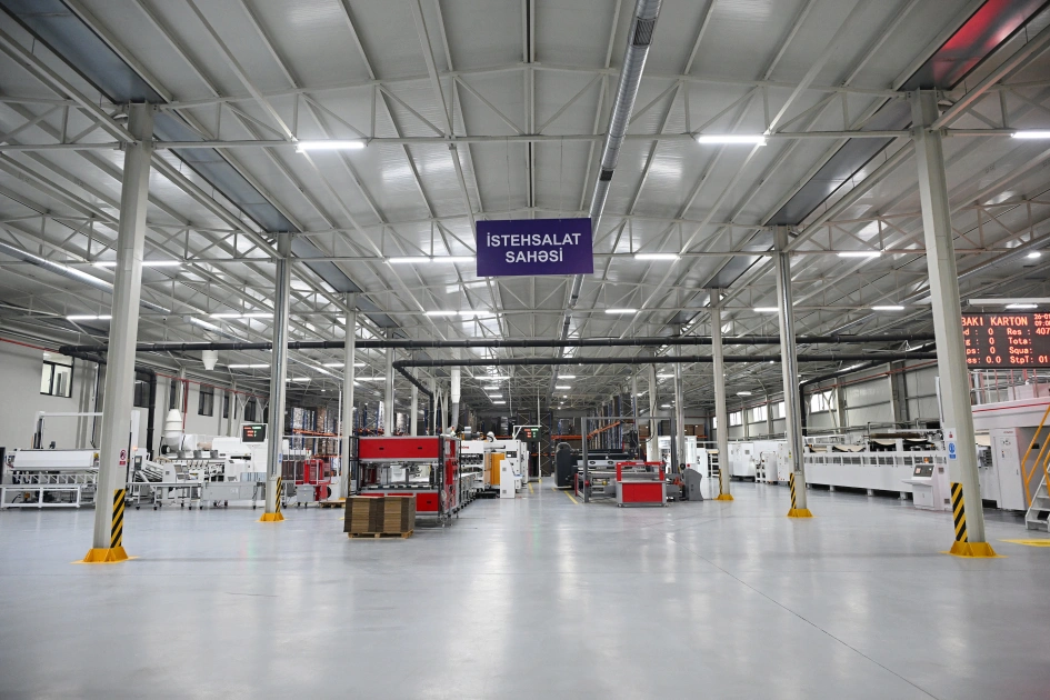 Bakı Karton və Qutu Fabriki Bakı Karton və Qutu Fabriki Sumqayıt Sənaye Parkı karton və qutu tarası istehsalı karton tarası qutu tarası karton və qutu fabriki Sumqayıt sənaye zonası sənaye parkı rezidenti Türkiyə texnologiyası Çin texnologiyası 55 milyon kvadratmetr karton illik istehsal gücü karton istehsalı qutu istehsalı