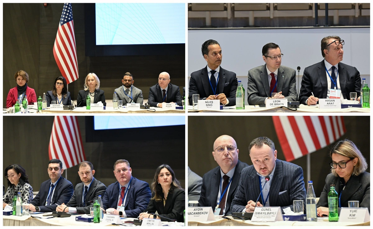 Dəyirmi masada dövlət başçılarının siyasi iradəsi sayəsində Azərbaycan - ABŞ münasibətlərinin strateji tərəfdaşlıq səviyyəsinə yüksəldiyi və iqtisadi əməkdaşlığın şaxələndirilməsi üçün geniş imkanların yarandığı vurğulanıb. Ölkəmizdə makroiqtisadi sabitlik və davamlı inkişaf prinsipləri əsasında formalaşmış iqtisadi mühitin xarici sərmayədarlar üçün cəlbediciliyi qeyd edilib. Azərbaycanda iqtisadiyyatın şaxələndirilməsi və qeyri-neft-qaz sektorunun genişləndirilməsi istiqamətində görülən işlər, prioritet strateji təşəbbüslər barədə məlumat verilib. Ölkəmizin əlverişli nəqliyyat-logistika üstünlükləri qeyd edilib, yeni nəqliyyat bağlantıları sayəsində əməkdaşlıq üçün əlavə imkanların açılacağı vurğulanıb. Azərbaycanda sahibkarlar üçün təqdim edilən güzəşt və stimullar, ölkəmizdə rəqəmsallaşma, investisiya axınlarının genişləndirilməsi, sahibkarlığın inkişafı istiqamətində atılan addımlar nəzərə çatdırılıb.