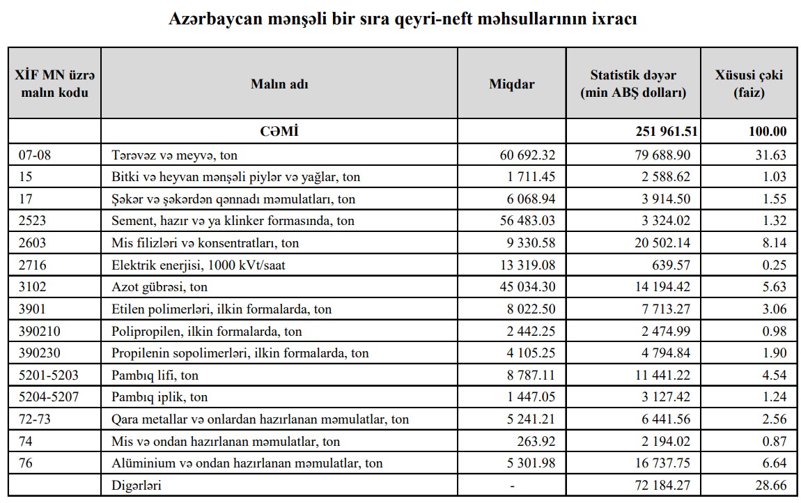 Azərbaycanın ən çox ixrac və idxal etdiyi mallar - YENİ SİYAHI