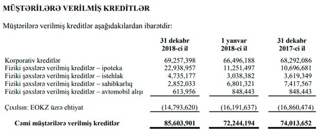 “Marja” “Bank Avrasiya”nın 31 dekabr 2018-ci il tarixində başa çatmış il üzrə Maliyyə Hesabatlarının Beynəlxalq Standartlarına Uyğun Hazırlanmış Maliyyə Hesabatına istinadən xəbər verir ki, ötən il korporativ kreditlər 965 min manat və ya 1,4% artaraq 69 milyon 257 min manata, fiziki şəxslərə verilmiş ipoteka kreditləri 12 milyon 242 min manat və ya 2 dəfədən çox (114%) artaraq 22 milyon 938 min manata, istehlak kreditləri 1 milyon 116 min manat və ya 30,8% artaraq 4 milyon 735 min manata çatıb.