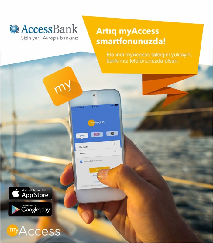 Qeyd edək ki, əməliyyatların yüksək təhlükəsizliyini təmin edən myAccess mobil bankinq xidmətiəlavə funksiyalar əlavə olunmaqla daim yenilənəcək. myAccess tətbiqini artıq App Store və Google Play-dən yükləmək mümkündür.