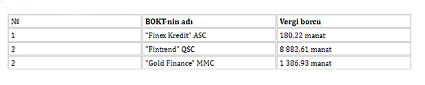 Azərbaycanda 3 BOKT-nin vergi borcu var