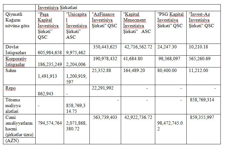 İnvestisiya şirkətlərinin dövriyyələri açıqlandı