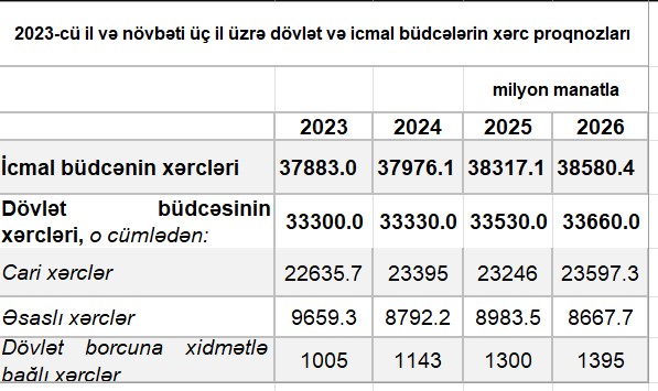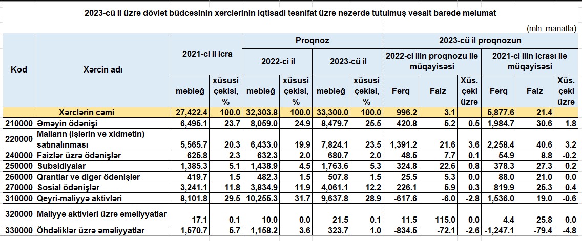 Marja.az xəbər verir ki, bu, 2023-cü il dövlət büdcəsi xərclərinin funksional və iqtisadi təsnifat üzrə bölgüsündə bildirilir.