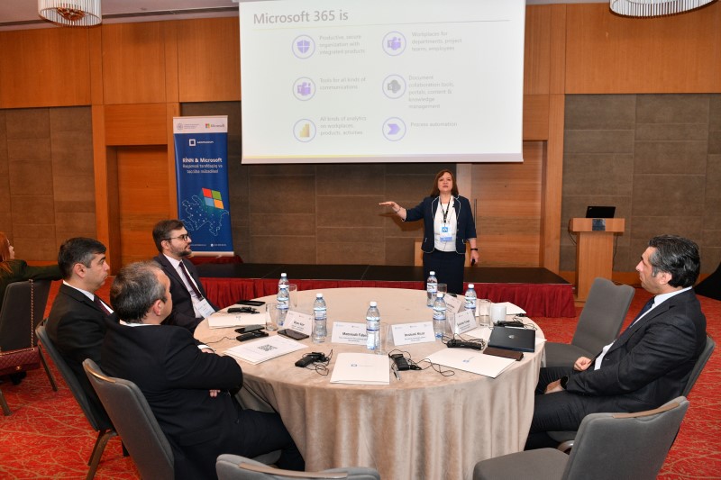 “Microsoft”un ölkəmizdə səfərdə olan nümayəndələri Anna Kaştanova və Tatyana İostman çıxış edərək mövcud proseslərin rəqəmsallaşdırılması istiqamətində şirkətin təklif etdiyi məhsulların təqdimatını keçiriblər. Beynəlxalq korporasiyanın rəsmiləri məhsullar və hər bir xidmət üzrə iş prinsipləri haqda ətraflı məlumat veriblər.